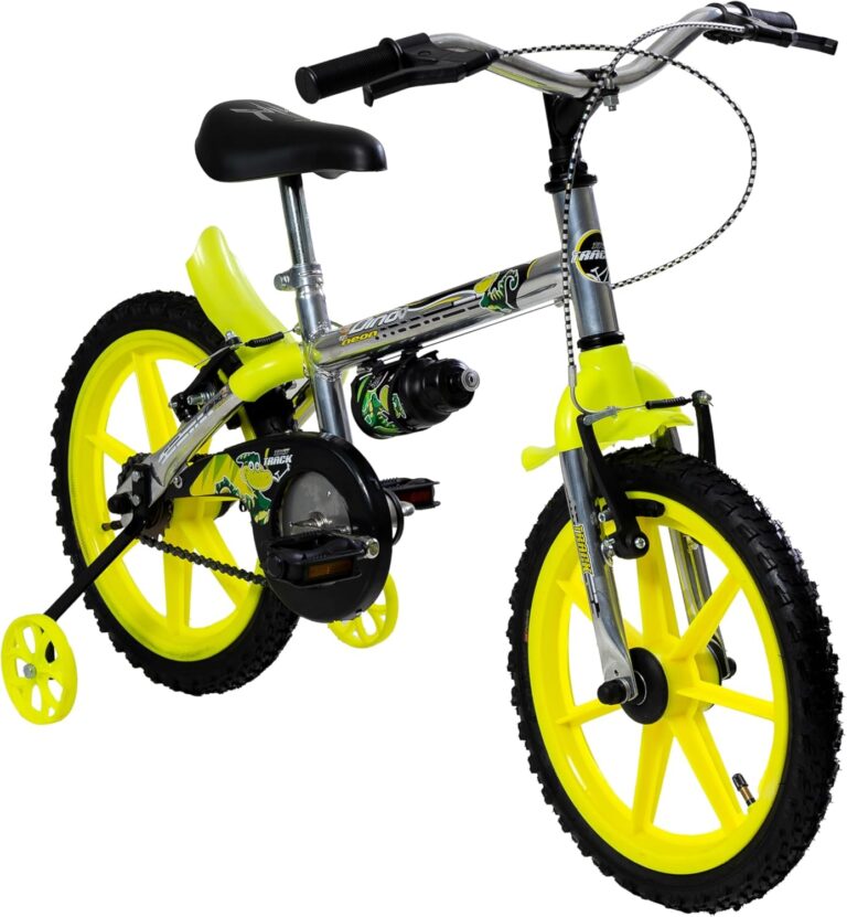 A Bicicleta Infantil TRACKTOR Aro 12 fabricada e comercializada pela Track Bikes, é produzida com um designer moderno e inovador para garantir um produto seguro e com qualidade para o seu filho. Lançada em duas cores, a bicicleta possui rodas de apoio para auxiliar nas primeiras pedaladas. Indicada para crianças com idade entre 3 e 5 anos de idade, com altura entre 70cm a 110cm, a TRACKTOR é a primeira bicicleta de uso infantil, criada para proporcionar momentos de diversão e auxiliar nas primeiras pedaladas da criança, desenvolvendo assim o seu equilíbrio e concentração. Sua estrutura é reforçada, com quadro fabricado em aço carbono, no tamanho 8 suportando crianças de até 20kg, possui guidão, canote do selim e pedivela fabricados também em aço, complementando a estrutura reforçada do produto. A TRACKTOR possui pneus fabricados em EVA, com Aros no tamanho 12, manoplas plásticas, assento em nylon não ajustável, corrente de transmissão grossa com catraca traseira de 16 dentes, cobre corrente plástico para proteção do pé durante a pedalada, tambor de freio dianteiro com alavanca plástica garantindo a segurança na hora da frenagem.