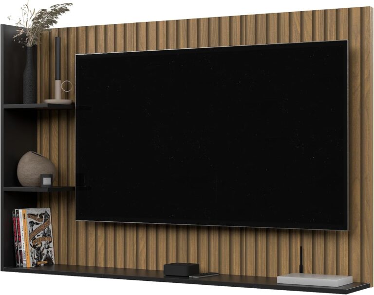 Painel Para TV 50 Polegadas Smart Para Sala Quarto Nicho Com Prateleira Berlim – Quality Móveis (Ripado/Preto) Oferta VER