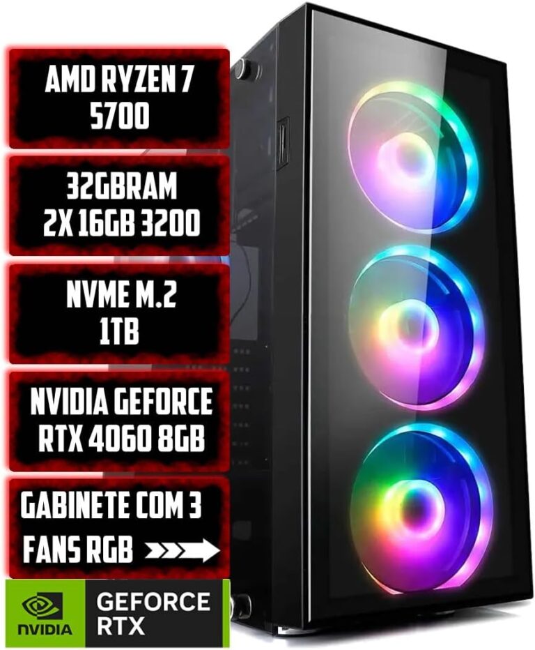 Pc Gamer Ryzen 5 4600G, 16GB RAM, SSD nvme 256GB, Radeon Vega 7 + Monitor 19″, Kit Gamer RGB Imagem Hitech Oferta VER