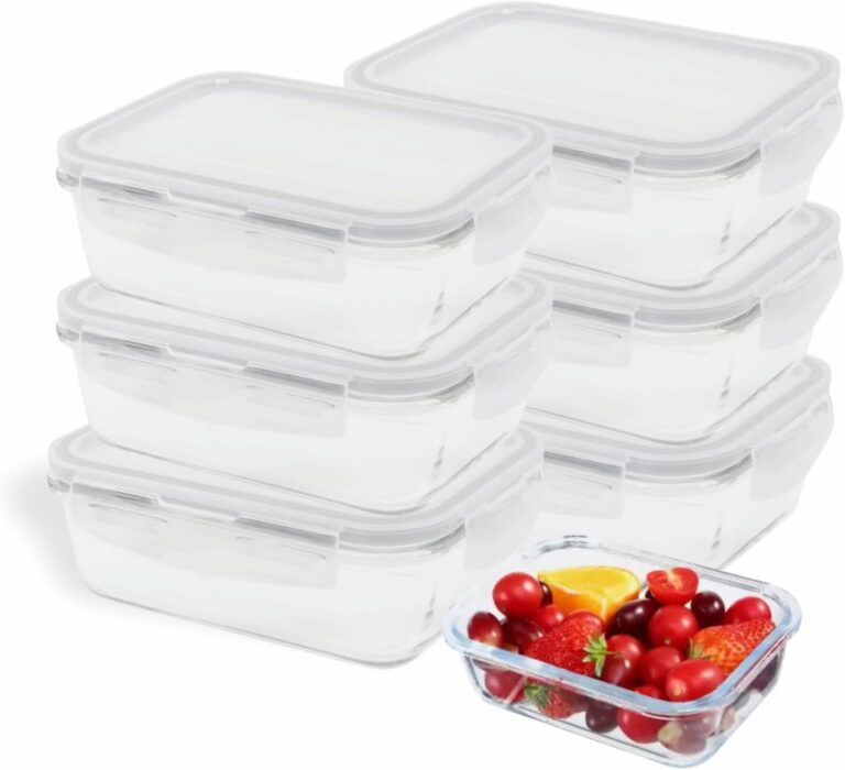 Kit 6 Pote De Vidro Hermético Retangular 640 ml Marmita Com Tampa 4 Travas BPA FREE Organizador de Alimentos ” Micro-ondas, Lava Louças, Freezer, Forno, Marmita Fitness “ Oferta VER